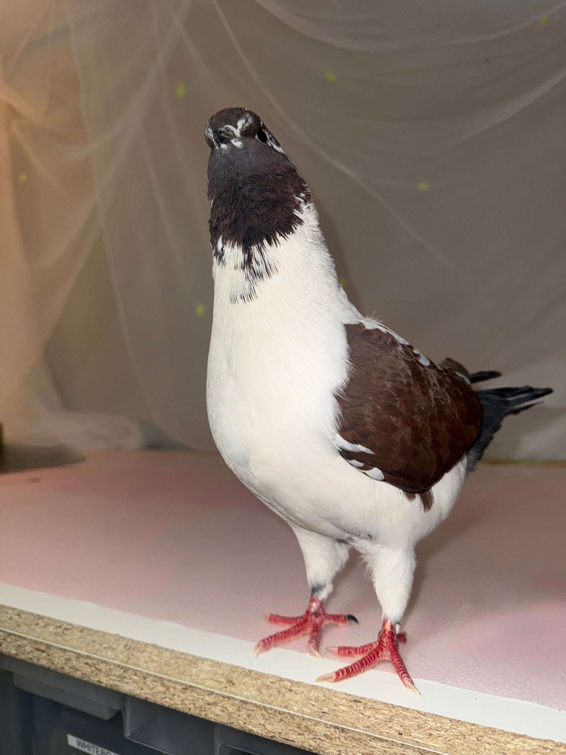 Meet Pixie our Female rescued Modena Pigeon! She's a shy but sweet and gentle loving lady who was rescued from a tiny outdoor cage. She's truly coming out of her shell and her personality is starting to shine!