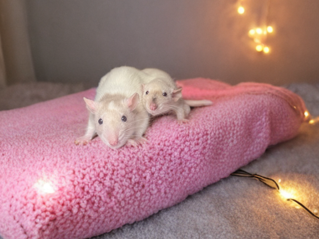 Meet Sugar and Spice, our two baby female rescued rats. At a young age, these two girls were rejected by their momma and had unfortunate biting wounds! Now these energetic girls love to give kisses and do tricks for treats!